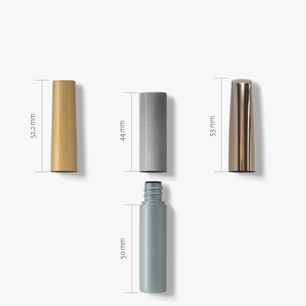 Il FP05 è un mini-pack cilindrico da 5 ml, compatto e leggero, progettato per essere facilmente trasportabile e versatile. La sua forma elegante lo rende perfetto per diverse formule make-up, dai mascara ai gel sopracciglia, eyeliner e ombretti liquidi. L’attenzione al dettaglio nella progettazione garantisce una presa confortevole, ideale per un utilizzo quotidiano e per chi desidera portare il proprio make-up sempre con sé.